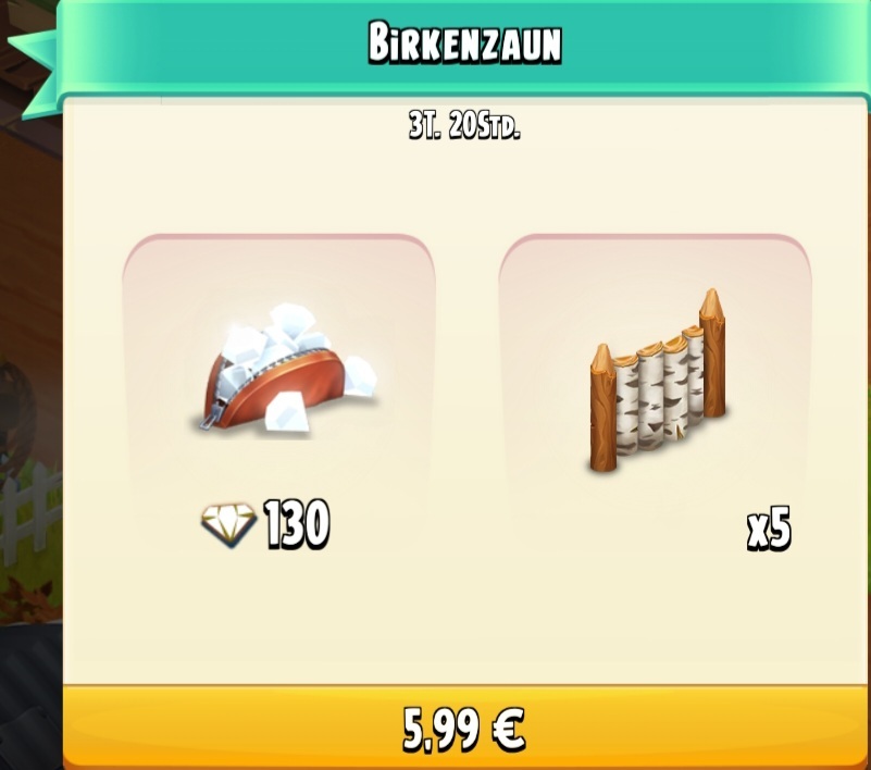 5,99 ⏠130 Diamanten und 5 x Birkenzaun