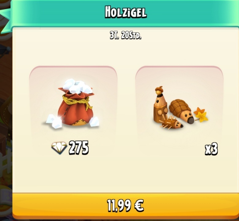 11,99 ⏠275 Diamanten und 3 x Holzigel