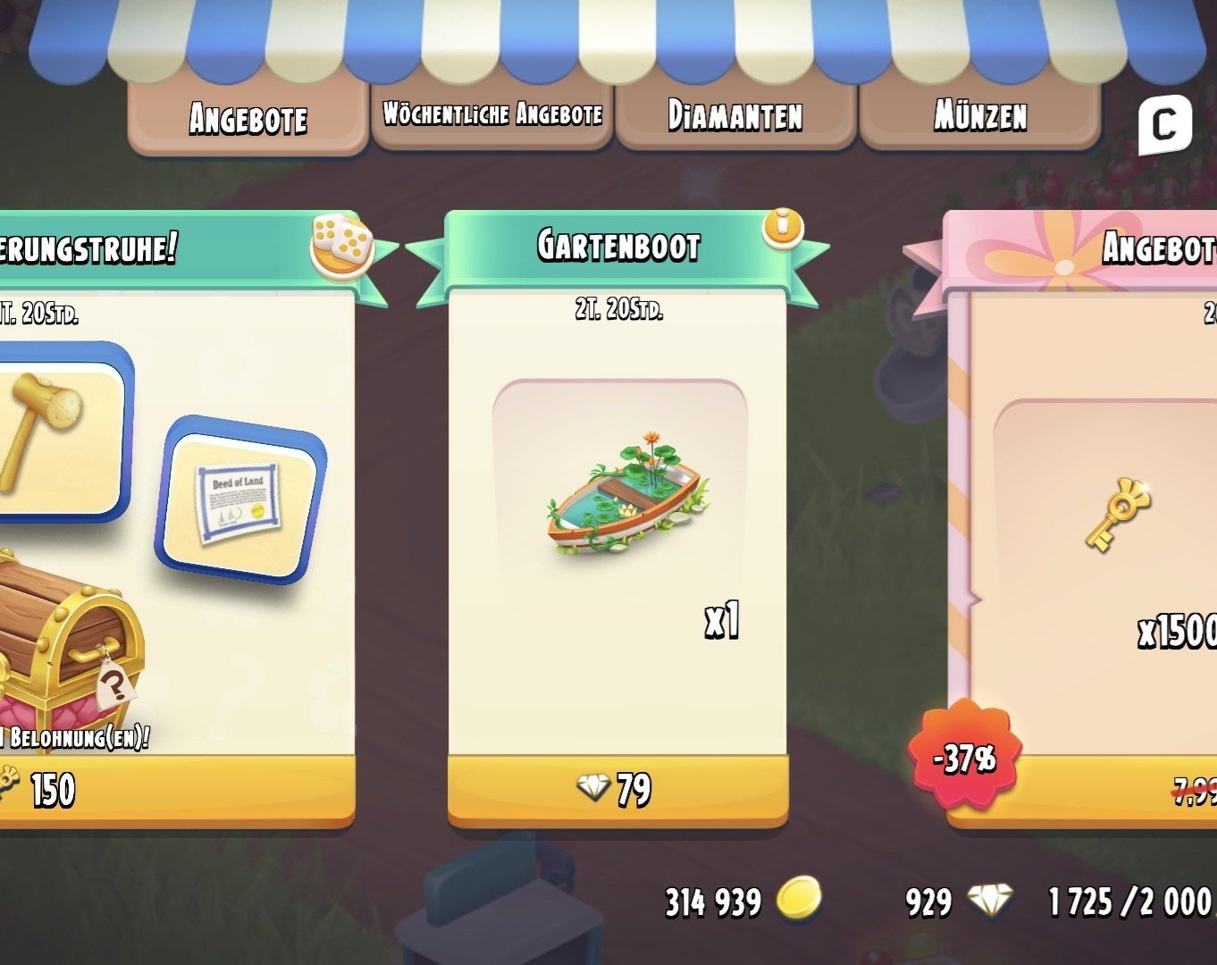 ) Diamanten. DafĂĽr ist jetzt der Planwagen (siehe #289) zumindest bei mir, nicht mehr zu finden. Offenbar wechselt SC doch die fĂĽr Diamanten kaufbare Deko ohne es irgendwo anzukĂĽndigen.Der Partypool ist nach wie vor fĂĽr Diamanten zu kaufen ...... wer weiĂź, ob das so bleibt
