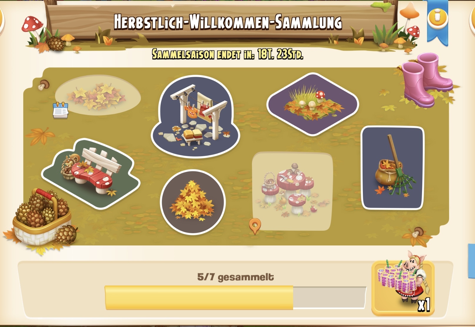 *Der Ereigniskatalog ist ab 16.09. verfügbar (5 Tg.). Die Dekos können gegen die Katalog-Währung Tannenzapfen eingetauscht werden.