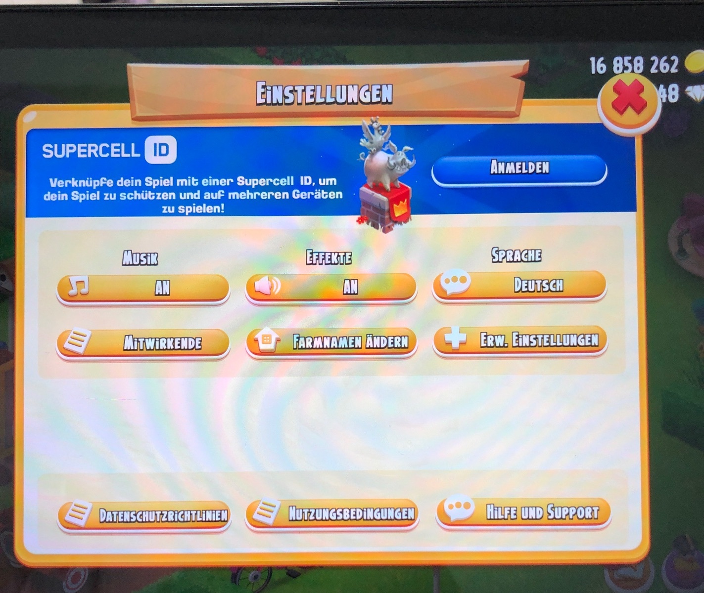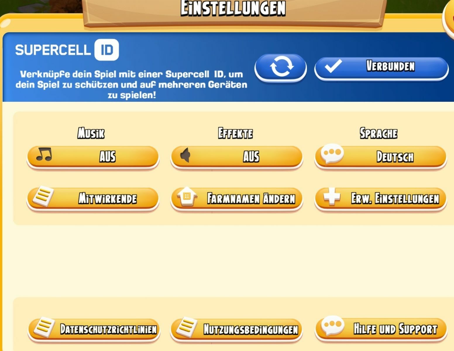 Um die Farm zu sichern und auf ein neues Tablet umzuziehen braucht sie unbedingt die Supercell ID.
