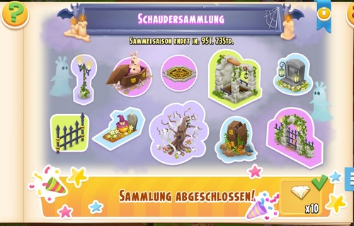 *Im Halloween-Katalog können die Dekos gegen die Katalog-Währung "Halloween-Hut" eingetauscht werden. Die Katalog-Währung kann zuerst
