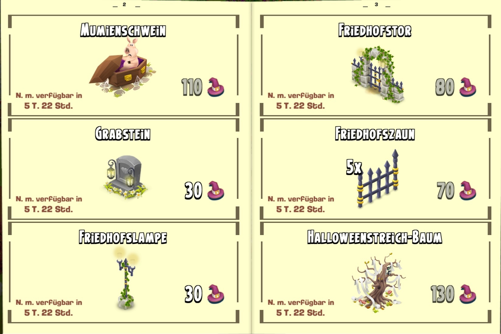 *Im Halloween-Katalog können die Dekos gegen die Katalog-Währung "Halloween-Hut" eingetauscht werden. Die Katalog-Währung kann zuerst