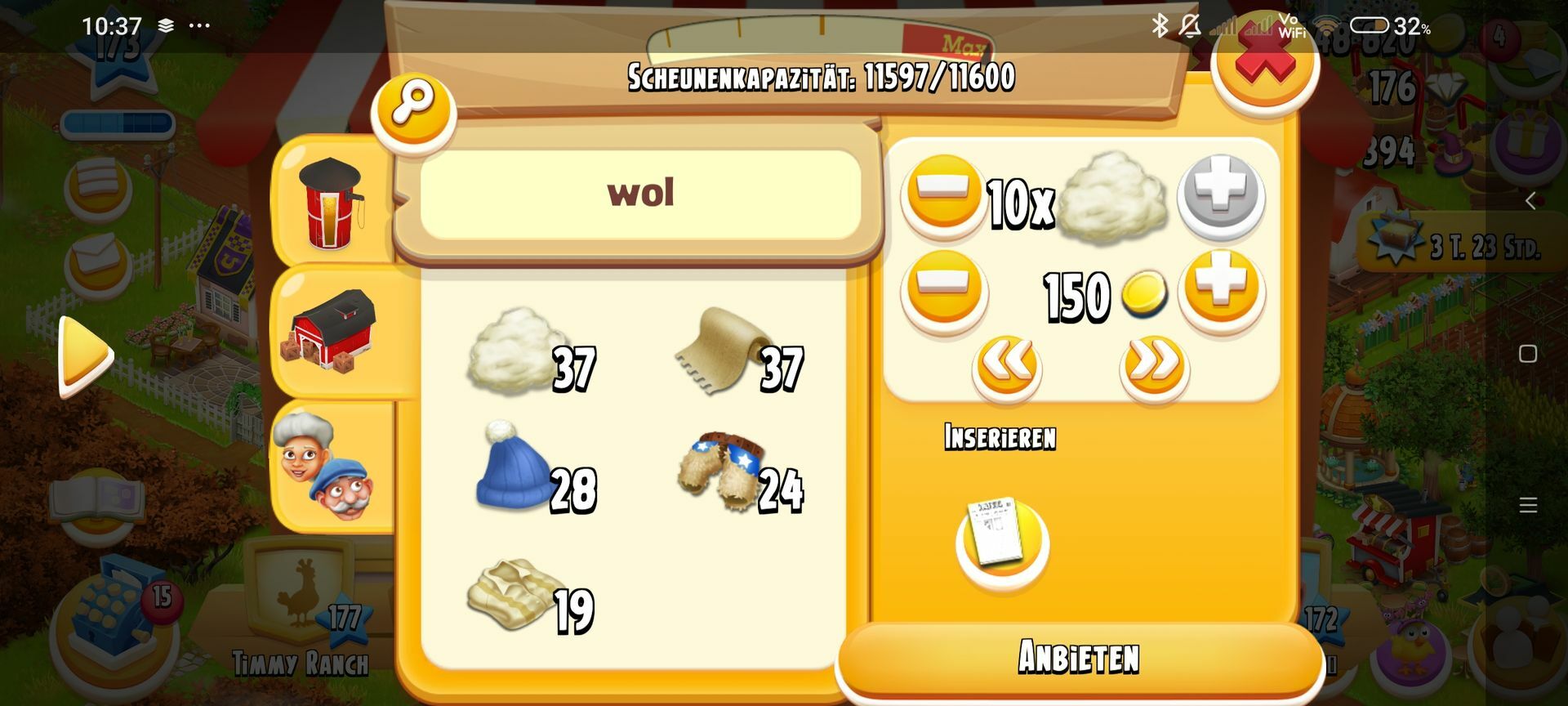 Worum es mir geht, ist, das ich glaub ich zu doof bin, das mit denen zu checken... Ich habe gerade reichlich Wolle im Lager.... Gehe ich aber zu Rose, wird mir angezeigt, ich hätte keine Wolle da... Ich checke das einfach nicht🤷... Kann mir das einer erklären bitte☺️... Ich lade auch mal Bilder hoch..