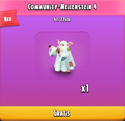 Der 4. Community-Meilenstein im Posteingang ist erreicht. Das Geisterschwein kann jetzt von allen im Diamantenladen abgeholt werden.