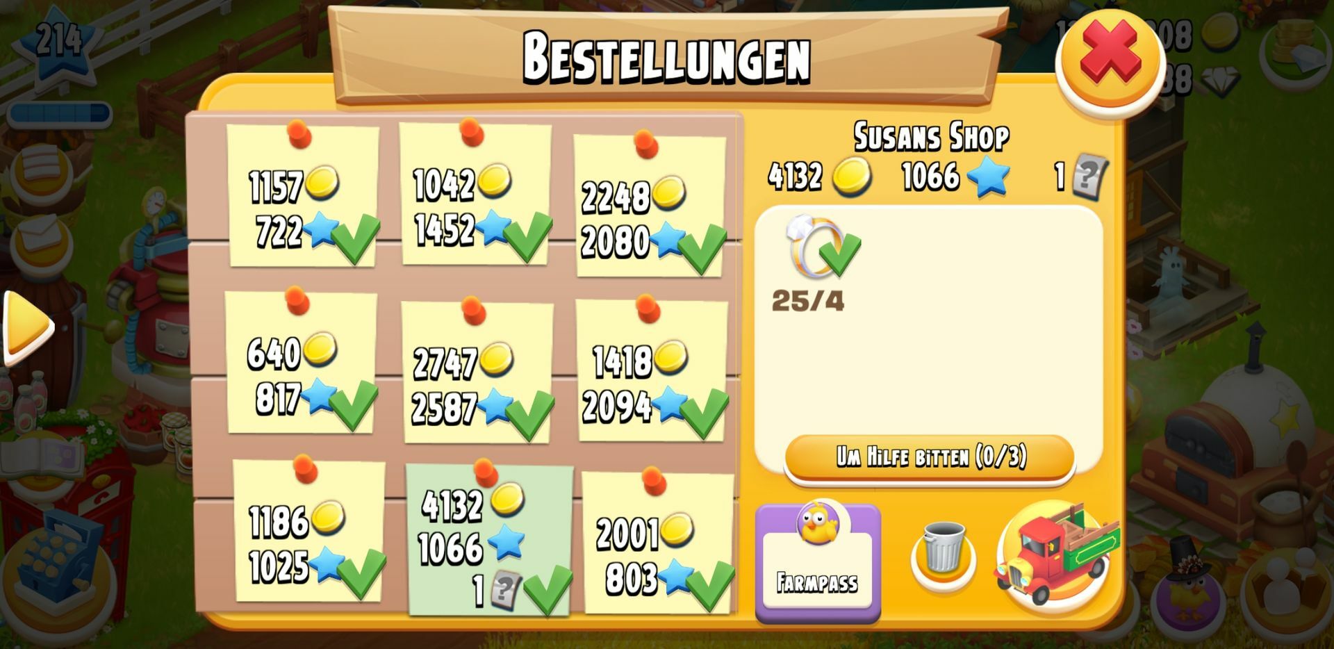Ich kaufe Diamantringe für die Lkw-Anfragen. Da bekommt man nicht nur oftmals mehr Münzen dafür, sondern natürlich auch noch die XPs.