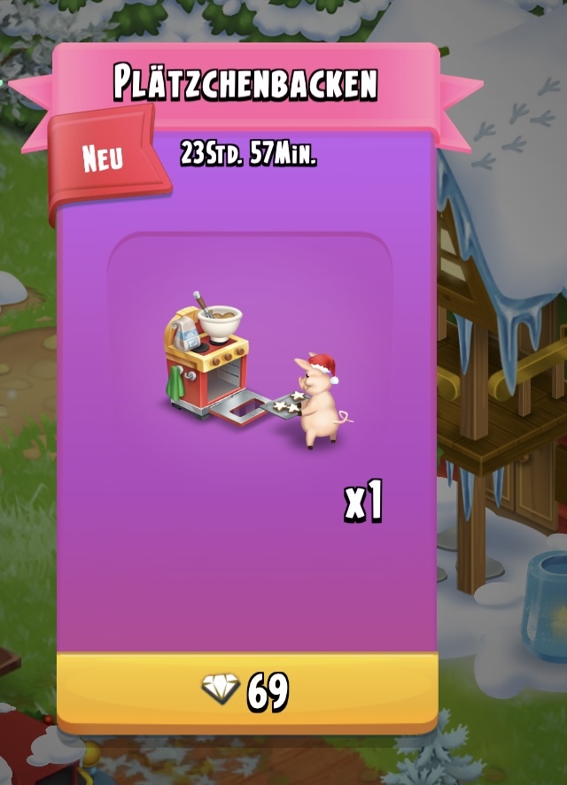 BTW, meine Hauptfarm hatte sich das Backschwein rechtzeitig gekrallt, da war es kein Ding, den Kalender zu vervollständigen. Aber meine Babyfarmen guckten traurig aus der Wäsche, weil ich dort so gut wie nix gemacht hatte. Also, Ärmel aufgekrempelt, und reingehauen. Das Backschwein rechtzeitig gekauft um den außerordentlichen Gewinn von 16 Diamanten zu sichern. Hat geklappt! Nicht zuletzt dank Deines Postings! 😘