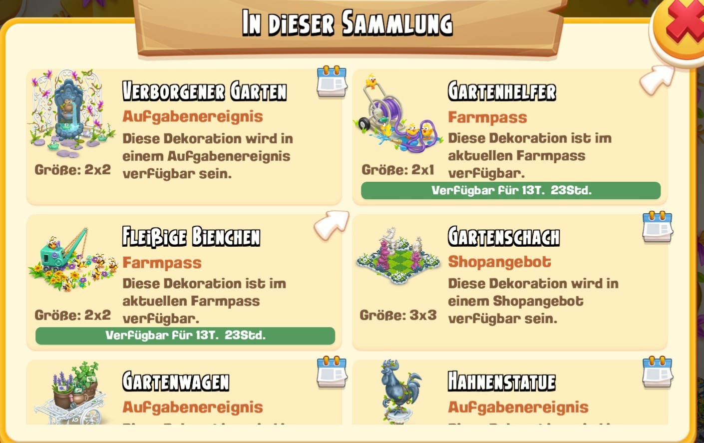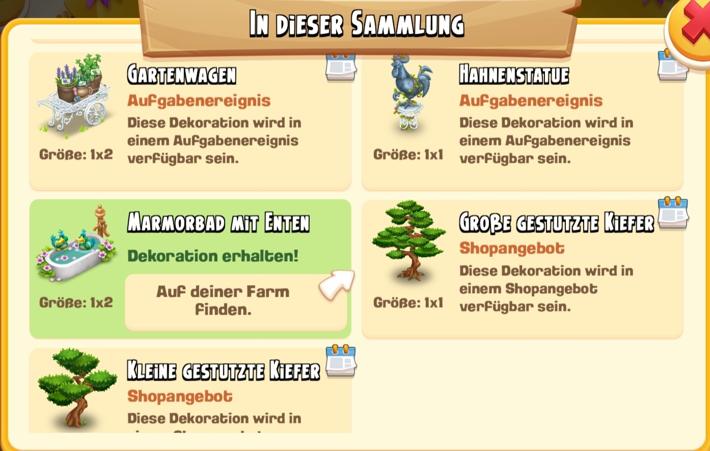 Die Infos wie die einzelnen Sammlungsteile zu bekommen sind, erfahrt ihr auch als Übersicht, wenn ihr in der Sammlung auf das Fragezeichen oben rechts klickt oder durch einen direkten Klick auf das einzelne Objekt.