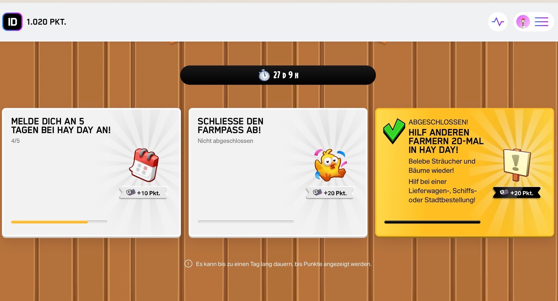 #68 Alles anzeigenIch konnte inzwischen meinen Farmpass aktivieren. Gehe auf das Kükenhaus, dann auf den Button Farmpass holen.