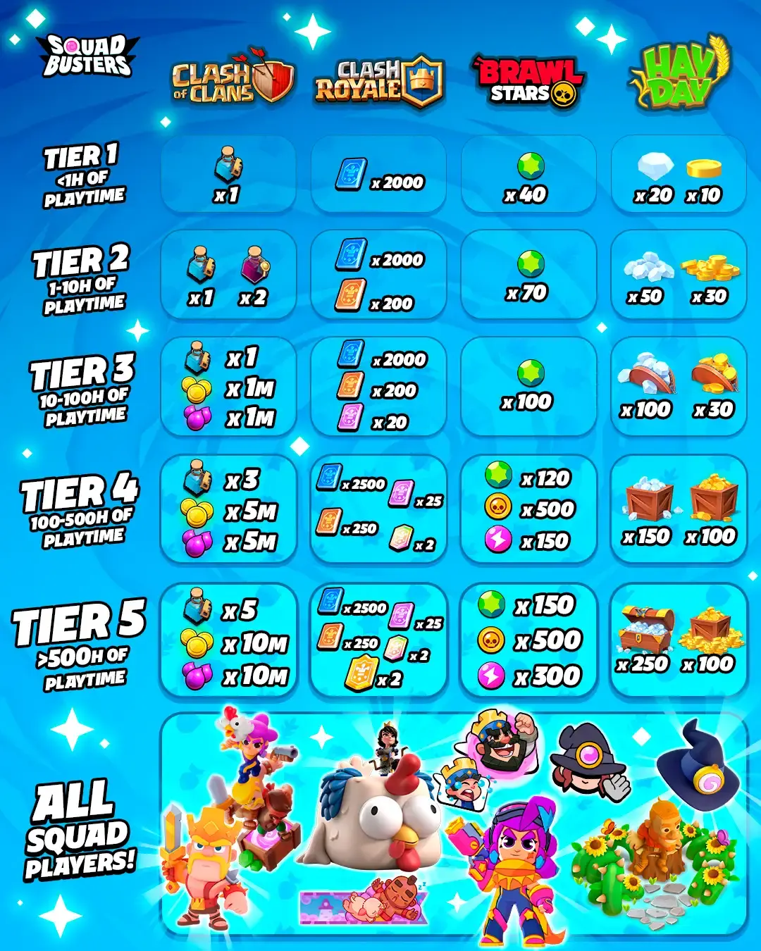 ZitatAlles anzeigenDie Belohnungen sind ab dem 10. November bis Jahresende erhältlich. Falls ihr noch nie eins unserer anderen Spiele gespielt habt, aber die Belohnungen einfordern möchtet, ladet sie herunter und verknüpft vor dem 10. November eure Supercell ID mit ihnen.