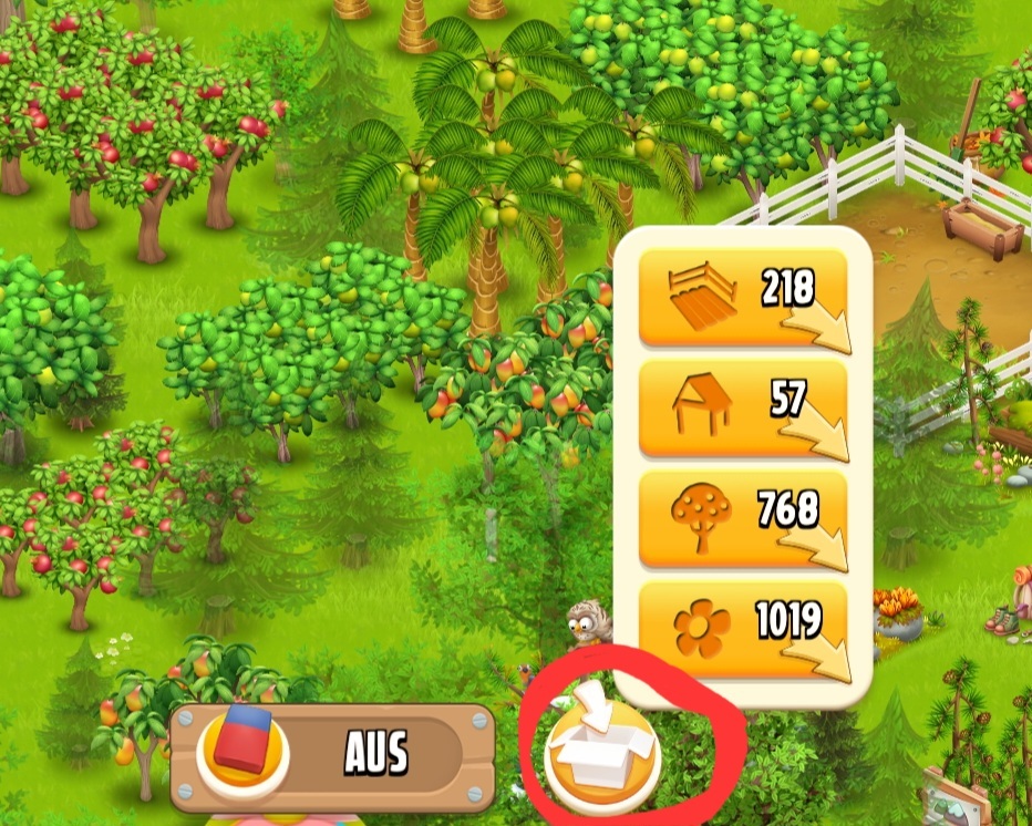 Wenn du auf den Karton klickst kannst du sofort z. B. alle Dekos oder alle Bäume auf einmal entfernen. Dann brauchst du nicht mühsam eine Seite oder Ecke einzeln abräumen.