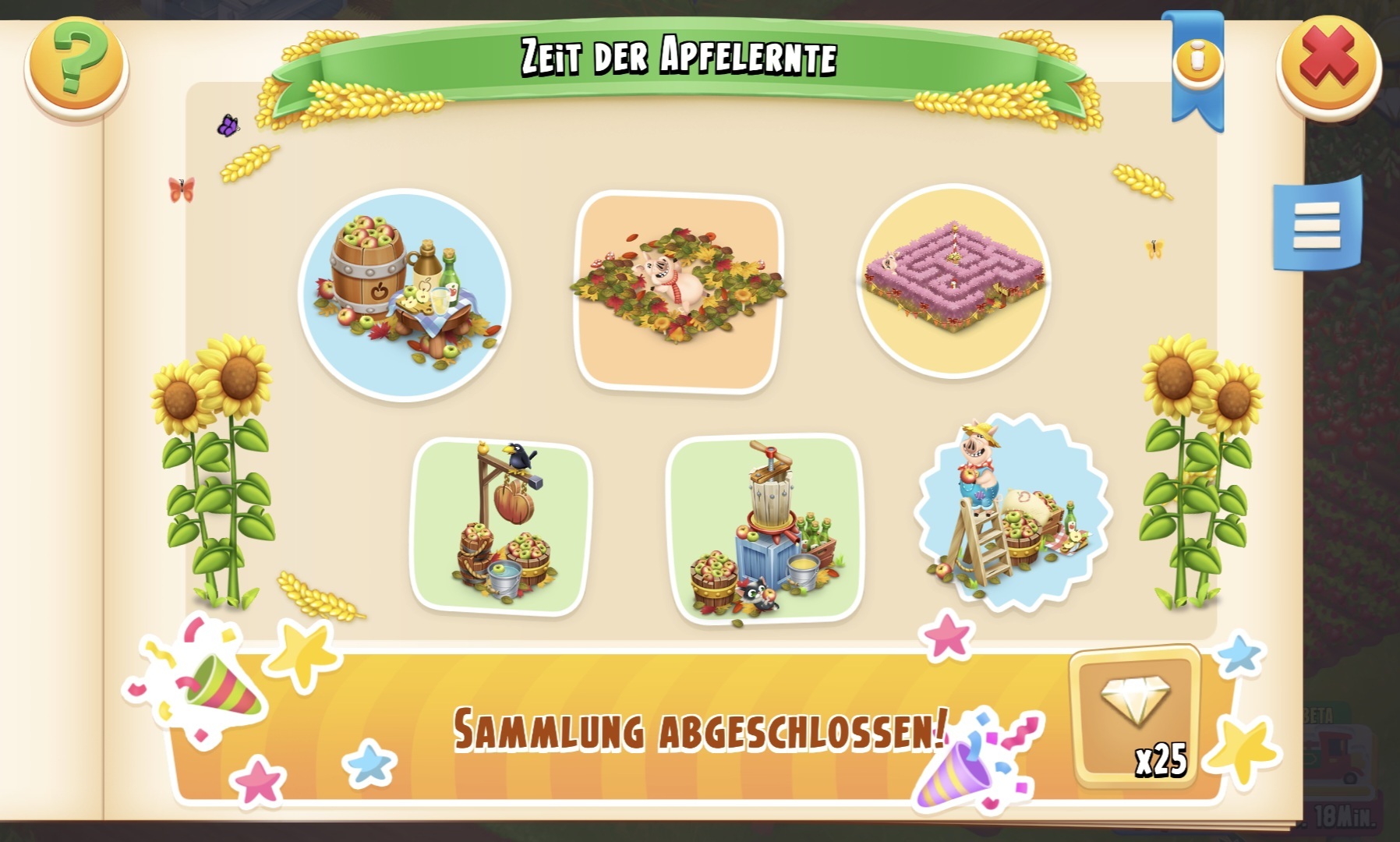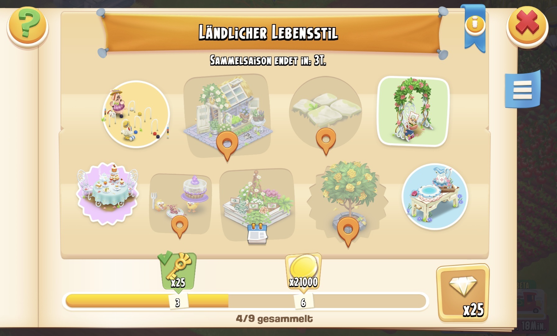 Teilbelohnung bei 6 Dekos: 20000 Münzen (Levelabhängig)
