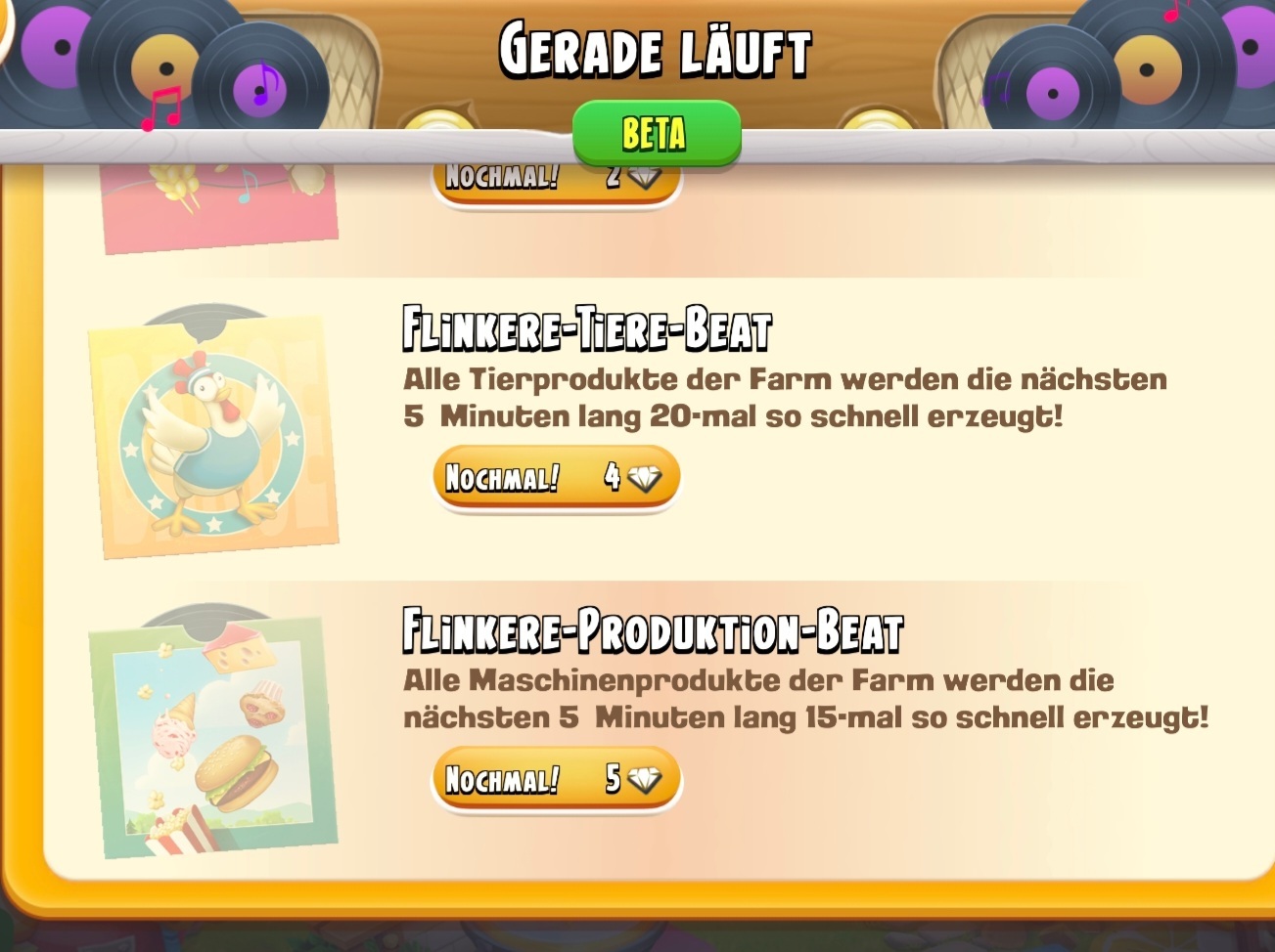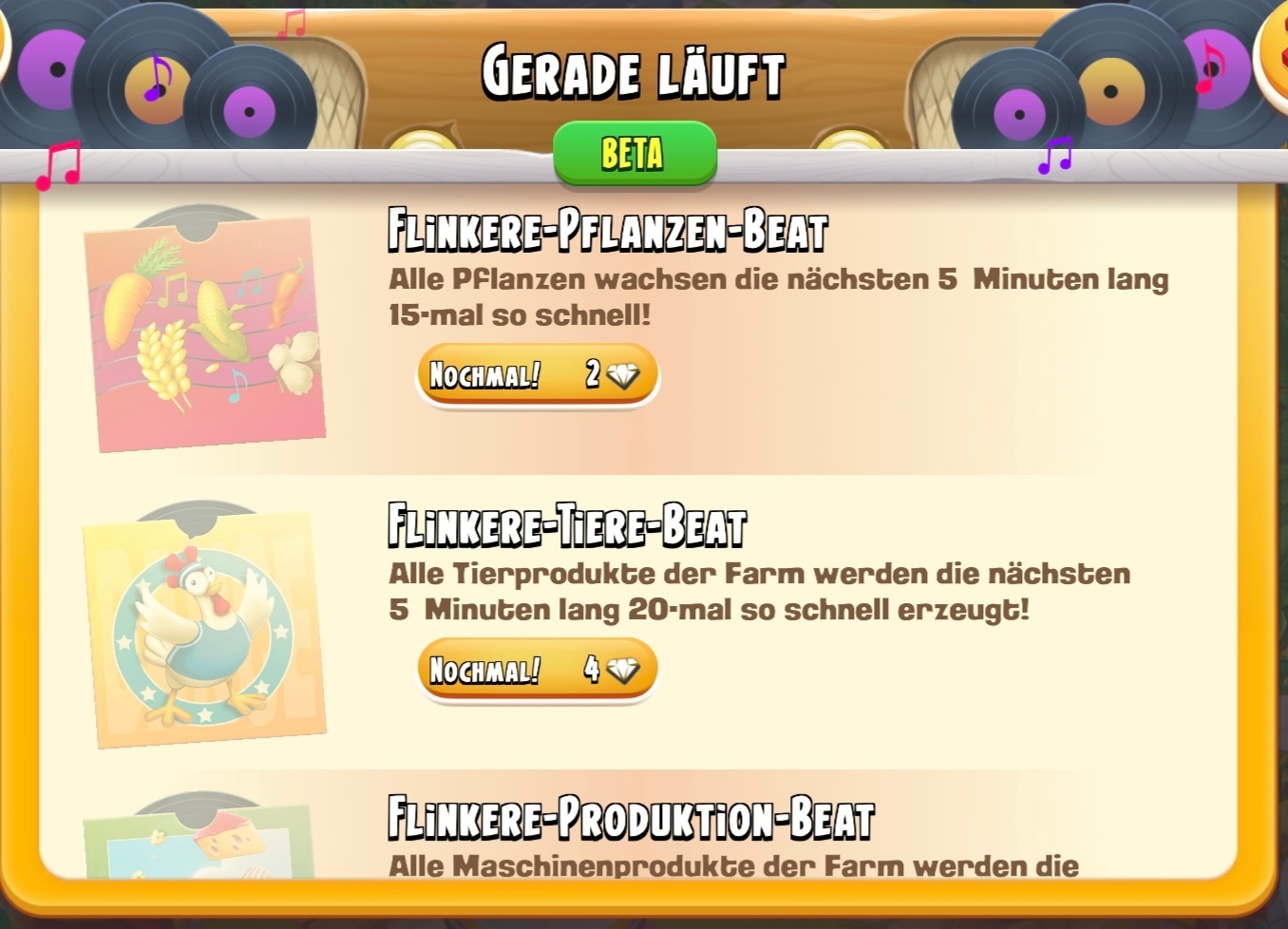 #28 So, mit dem Levelaufstieg habe ich drei Beats bekommen, die SOFORT starteten.