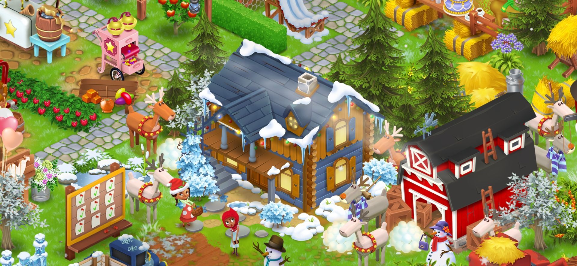 Komisch, bei mir gab es zuerst das braune Dach mit Schnee und dann das blaue.