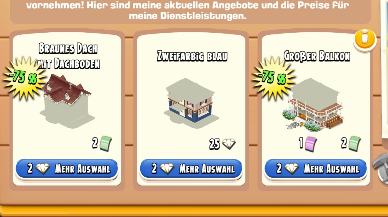 Hab mal eben bei mir geschaut, ..hab die auch. Und da ich mir sicher bin, noch keinen einzigen Diamanten bei Maggi ausgegeben zu haben , gab es diese Veranda für Münzen . Aktuell könnte ich sie auch für Münzen wieder anbringen lassen