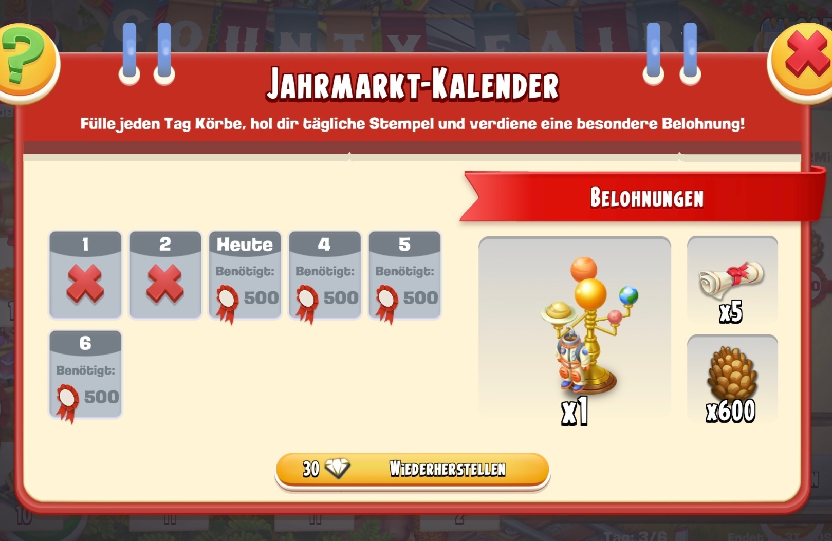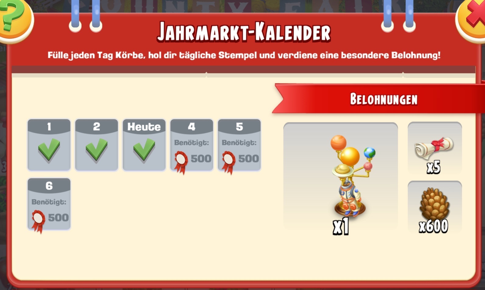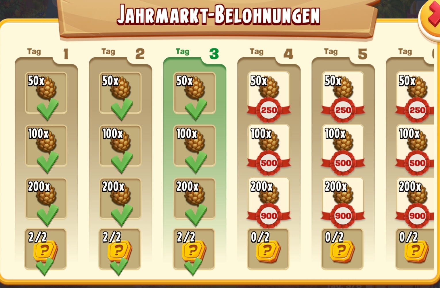 Hat der Support deinen Jahrmarktsfehler zwischenzeitlich behoben oder fehlen dir immer noch die beiden erledigten Tage?