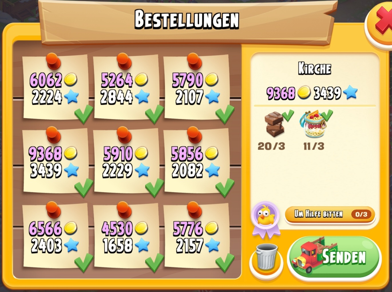 Und wenn ich fertige Produkte eingesammelt habe und dann in die Maschine rein war immer oben die Einblendung der Scheune über das obere Produkt.