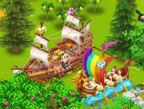 Alles anzeigenIch habe vom letzten Herbst noch das Segelschiff in meinem Speicher. Damit schippere ich auf das Designgelände. Die Hühner kommen mit dem bunten Wikingerschiff hinterher.