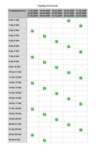 Ich habe eine Tabelle erstellt, erstmal vom 17.02. bis zum 03.03.2026.