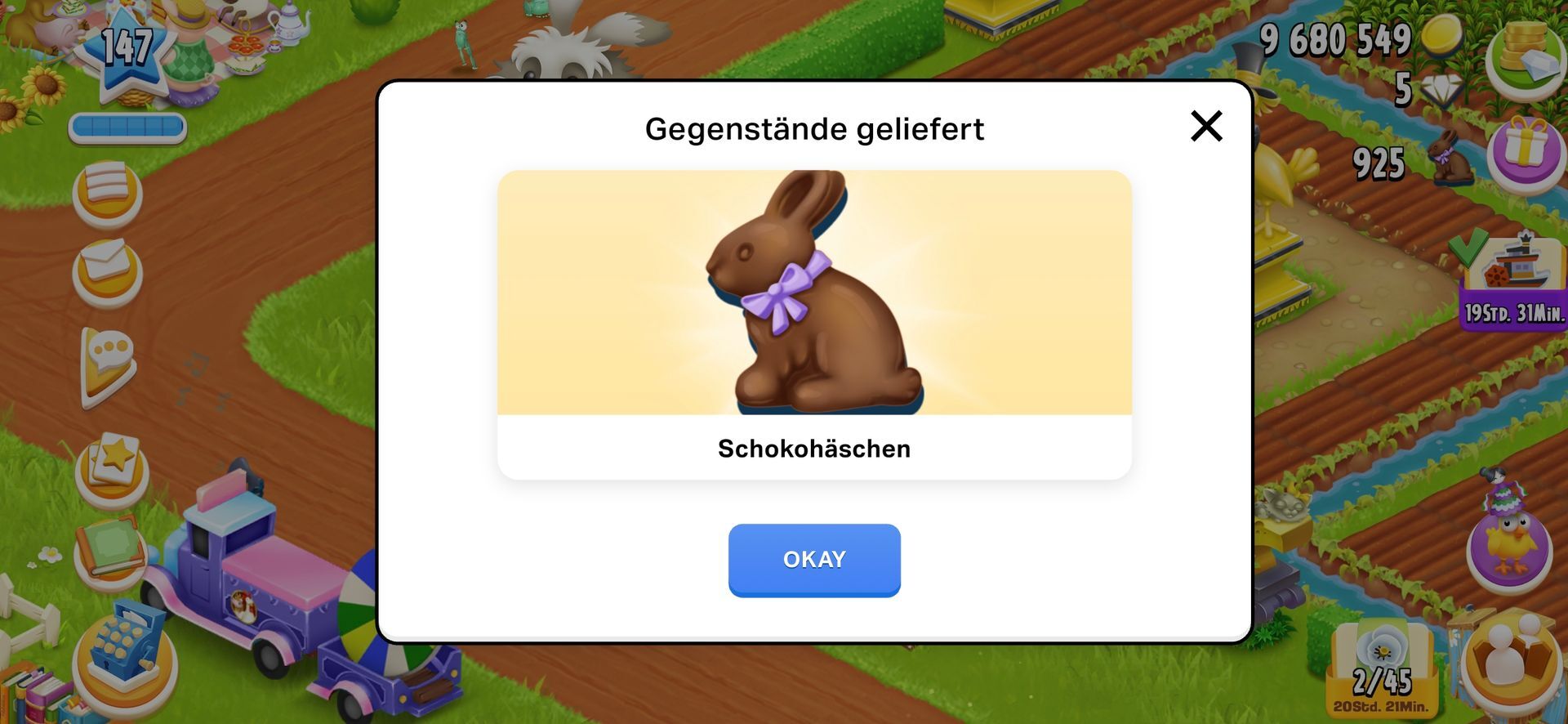 So, Schiff erledigt, mein nächstes Schiff kommt in 4h und verlangt 2x verschiedene Eier und ein anderes Produkt. Also auch alles wie zuvor.