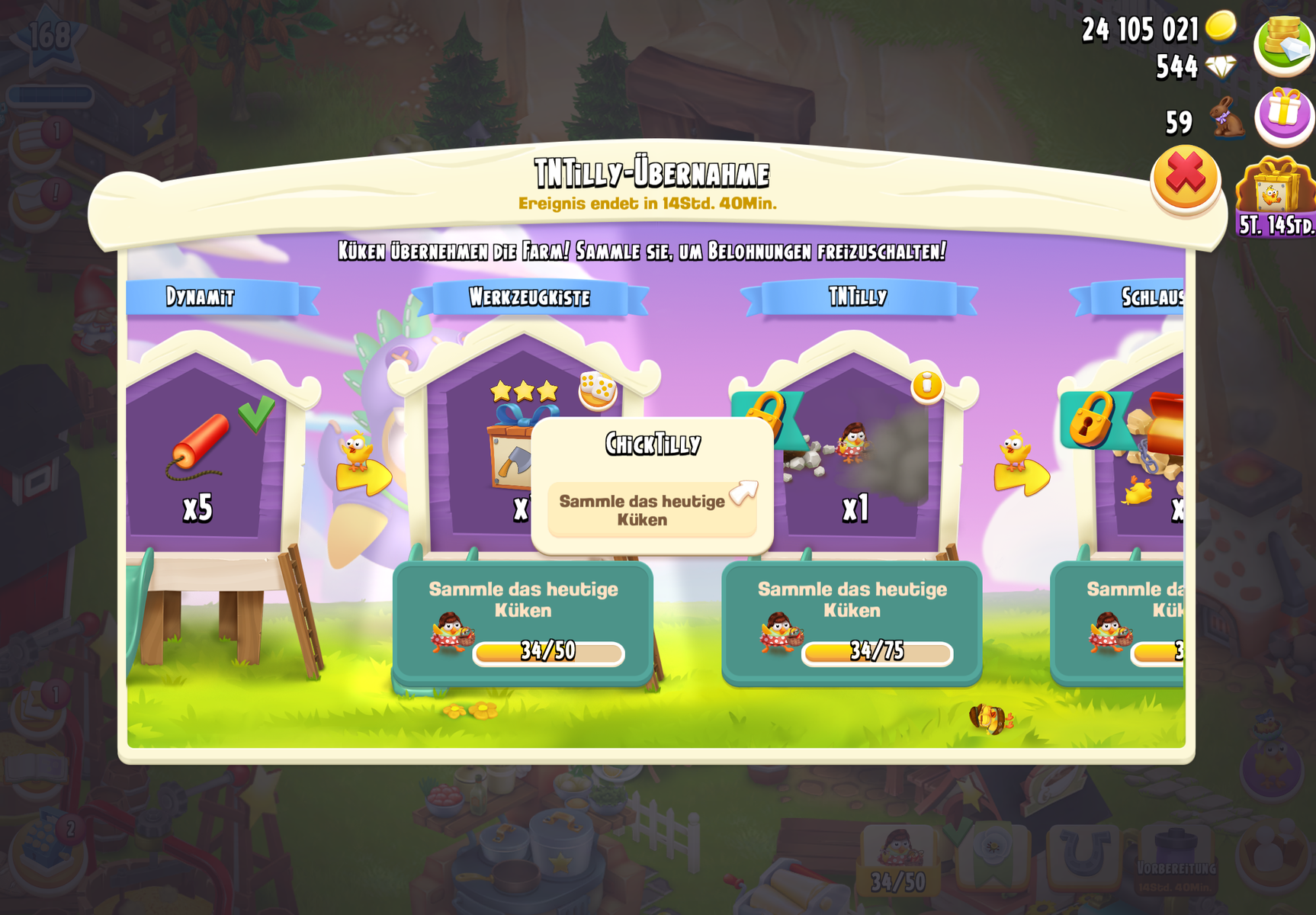 #12 Ich habe gerade eben erst 2x Mine für das Derby gemacht, wenn man viel hintereinander sprengt kommen sie auch - etwas warten nach dem Sprengen, es dauert einige Sekunden bis die Küken aus der Mine wandern. Die Geheimkisten, die gesucht werden bewegen sich übrigens.
