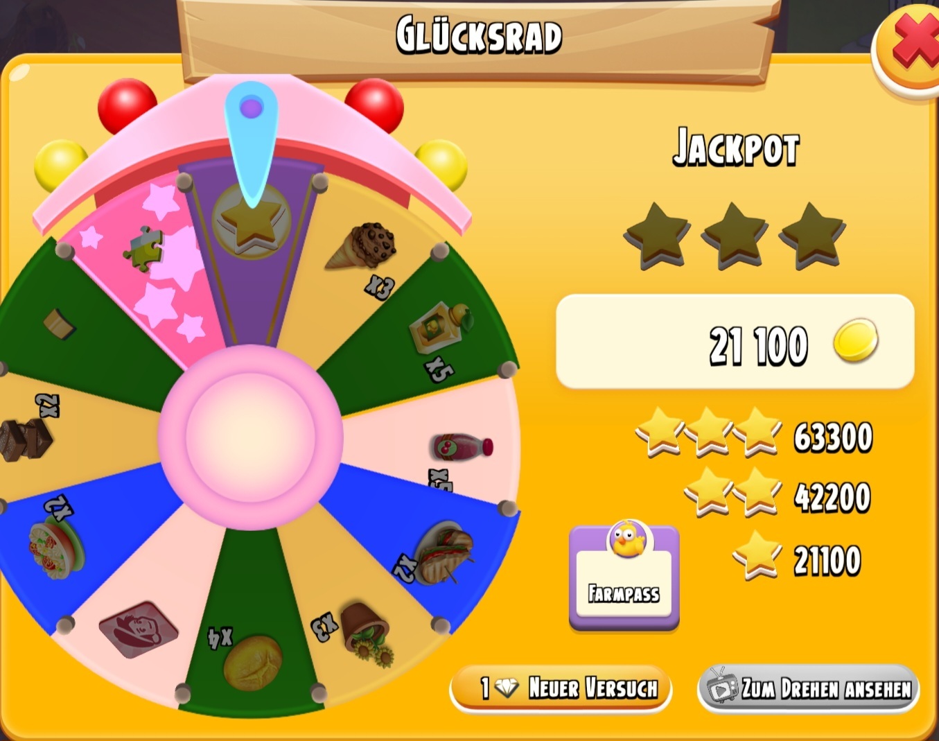 Bei mir passt das Glücksrad, hab aber trotzdem das Puzzleteil nicht bekommen.