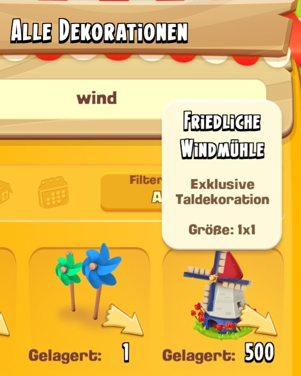 Ich weiß nicht mehr, welches Ereignis es war. Aber die Belohnung sollte wohl eine Windmühle sein. Stattdessen haben alle „glücklichen“ Gewinner jetzt 600 von den Dingern im Lager oder auf der Farm. ![]()