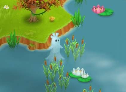 bei manchen steht er beim wasserfall, bei mir stand er mal in der mitte bei der kleinen insel...