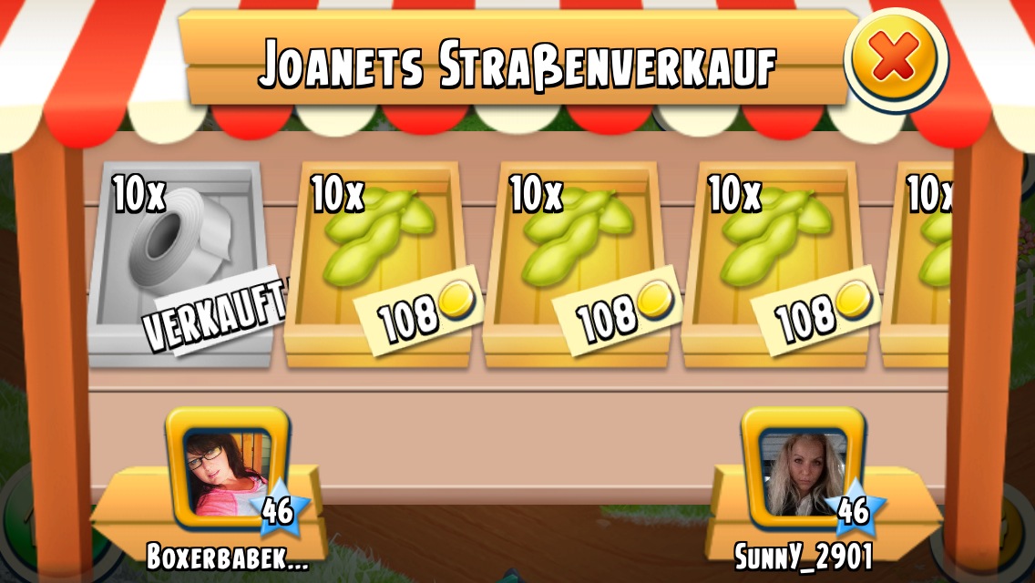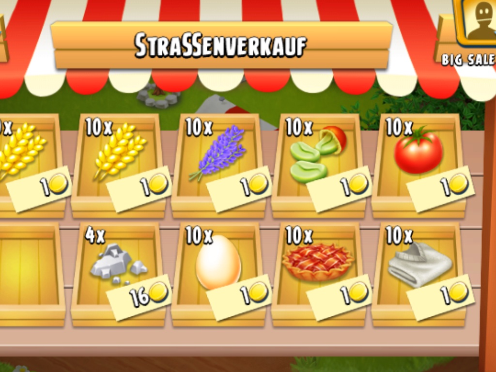 Im Shop seh ich dann: 10 Schokoeis, 10 Vanilleeis, 10 Erdbeereis, 6 Fischsuppe, 6 Apfelkuchen.