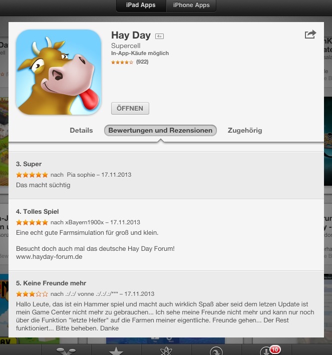Rezensionen im App-Store geschrieben, veröffentlicht und somit jeweils 5 Tools gewonnen haben: