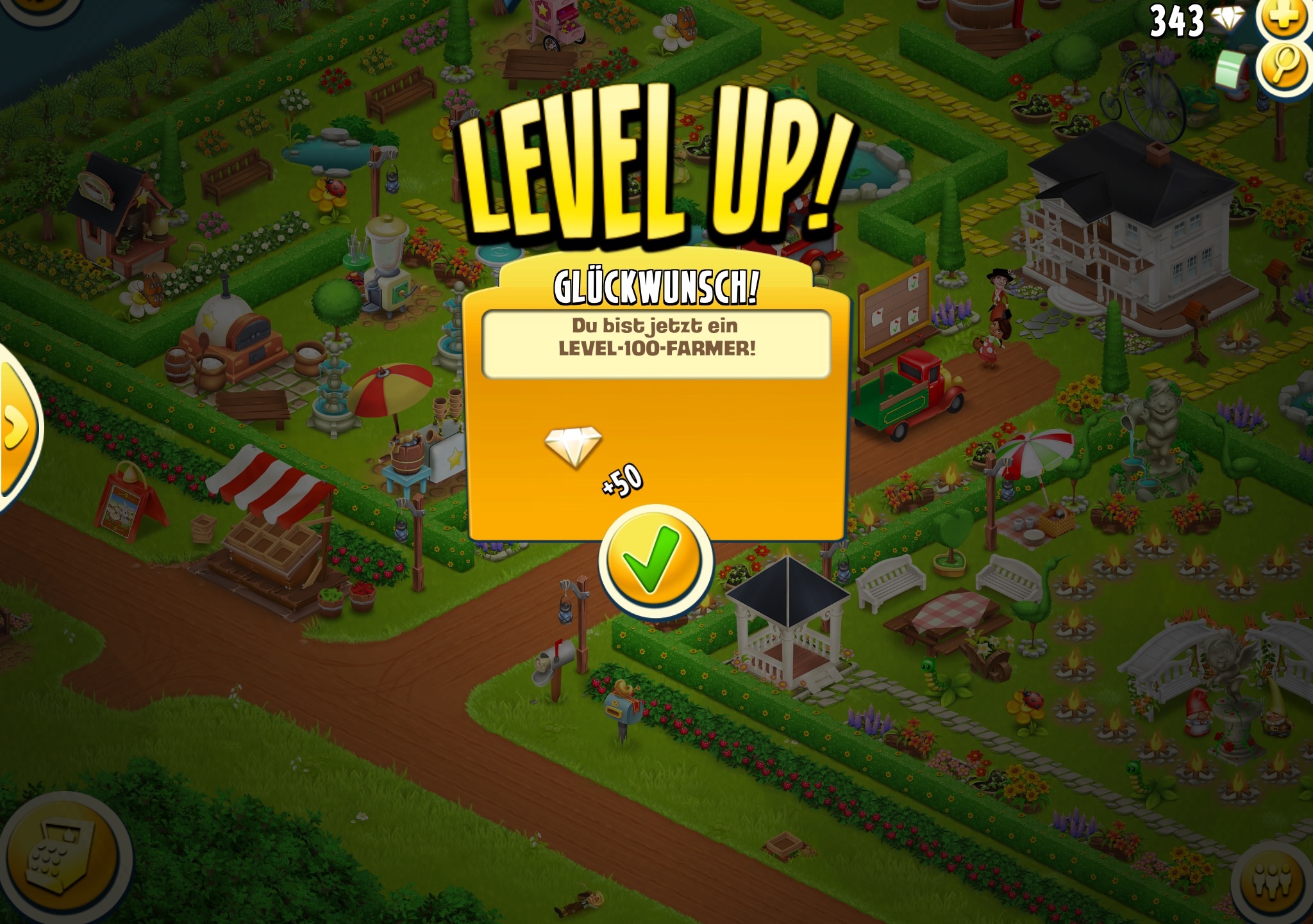 Liebe HayDay Freunde,Nachbarn und Mitglieder manche haben es mitbekommen andere wieder nicht,und darum möchte ich auf diesem Weg euch sagen,das ich Level 100 seit gestern geschafft habe