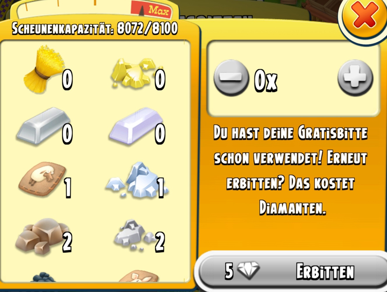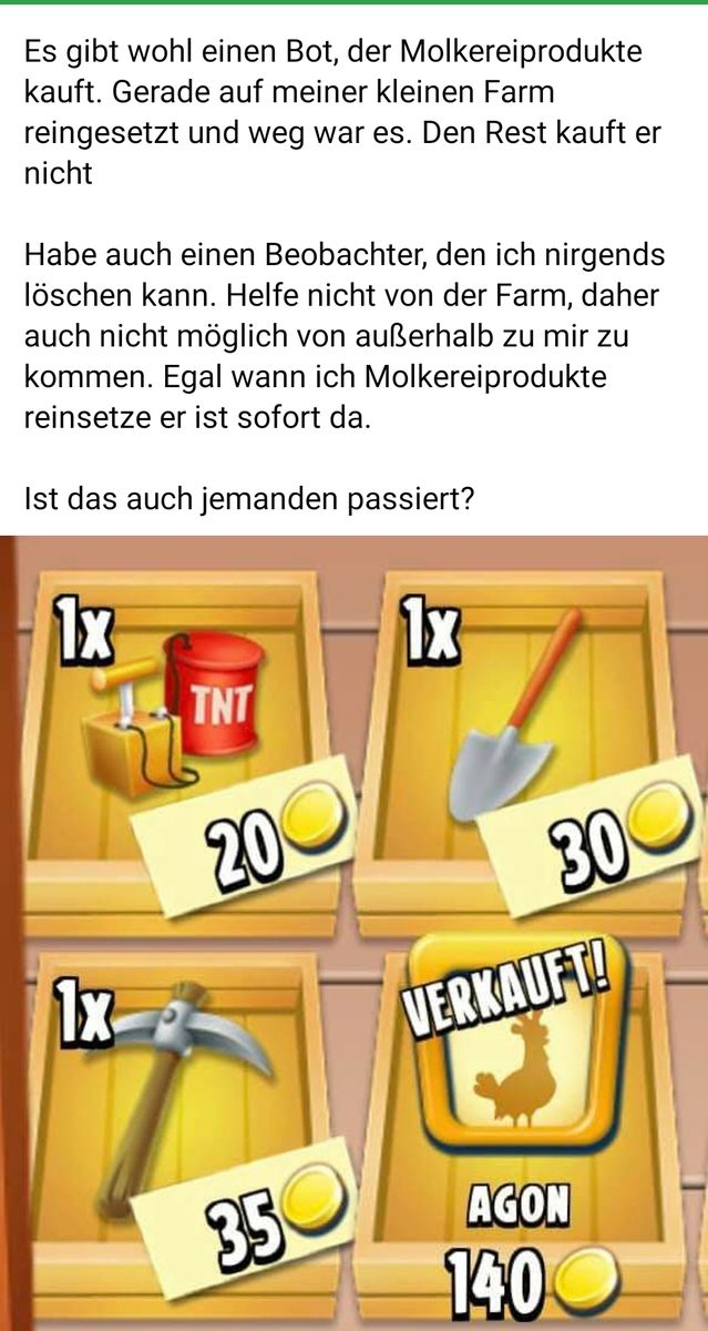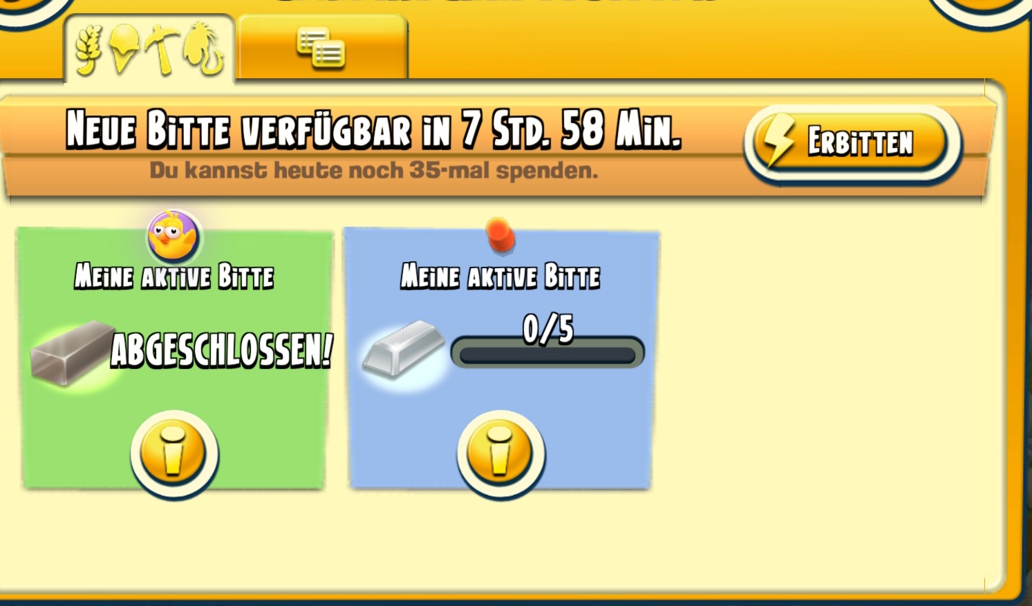 In einer meinen kleinen Farmen, bei denen ich nicht alle Wochenaufgaben erledigt habe, habe ich jetzt 2x Schiffe abfertigen. Einmal 5x und einmal 4x.