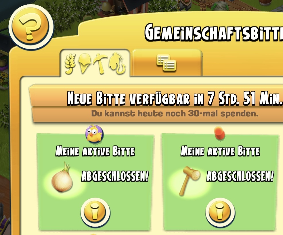 ich habe seit dem (katastrophalen) Update das erste mal wieder Gemeinschaftsbitten eingestellt. Durch den Farmpass kann ich zwei Bitten gleichzeitig einstellen.