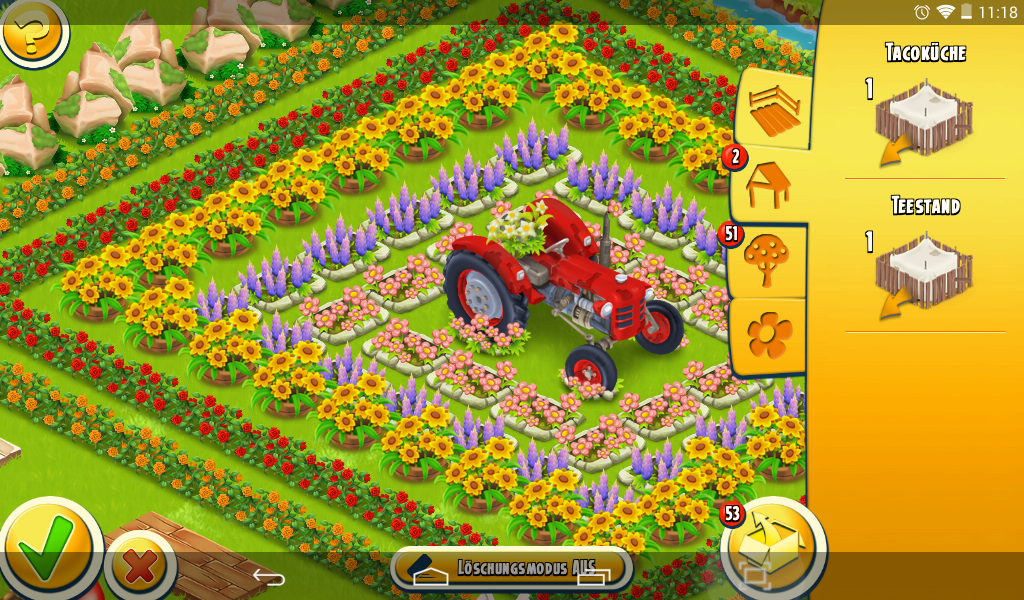 Bei einem neuen Layout muss mann alle Pflanzen, Tiere und Maschinen platzieren.