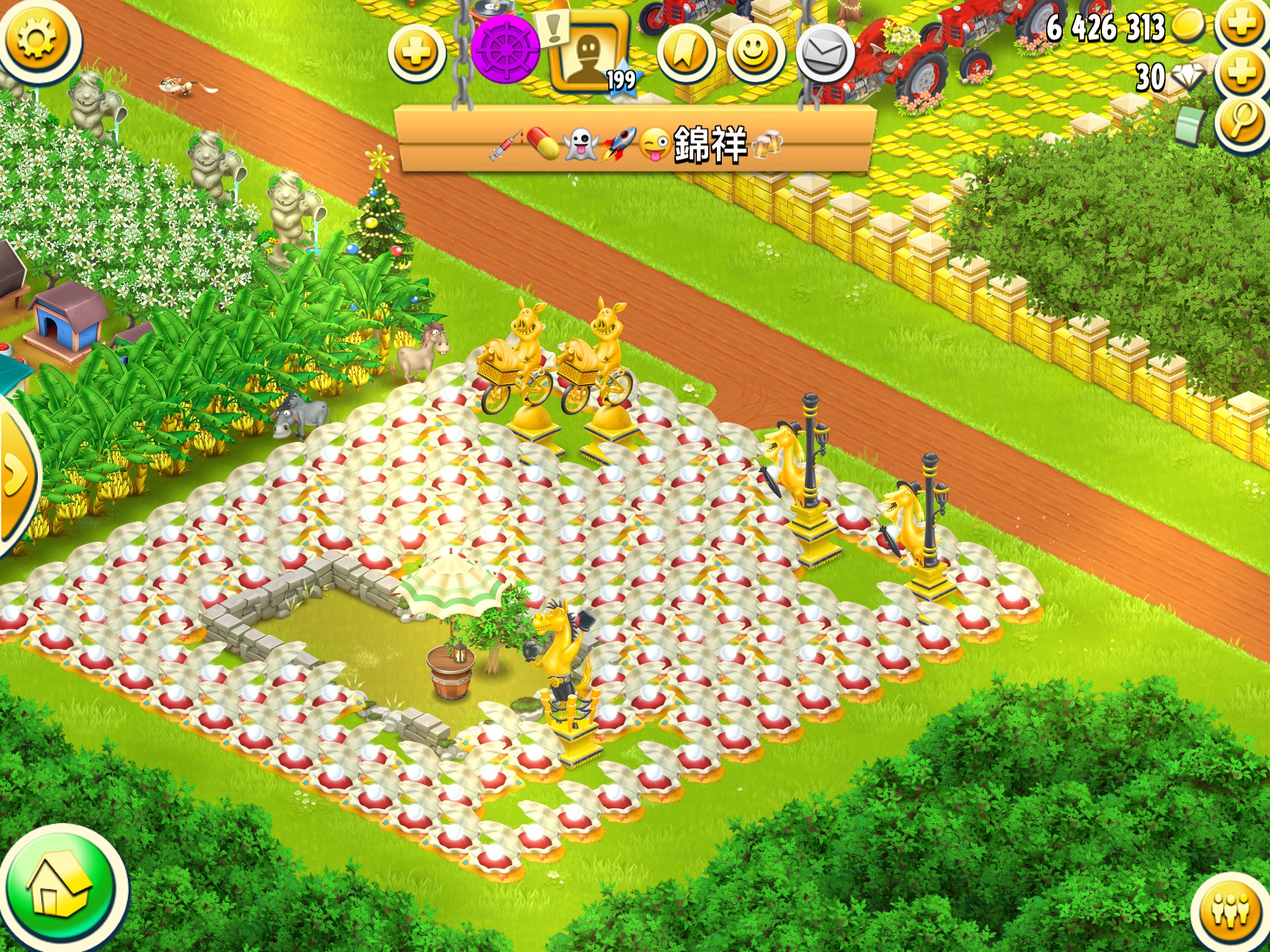 Ganz ehrlich: Ich glaube da ist jemandem das Spiel bei Level 199 einfach langweilig geworden. Mir gefällt meine einzige Perle am Strand auch besser als diese Protzerei....