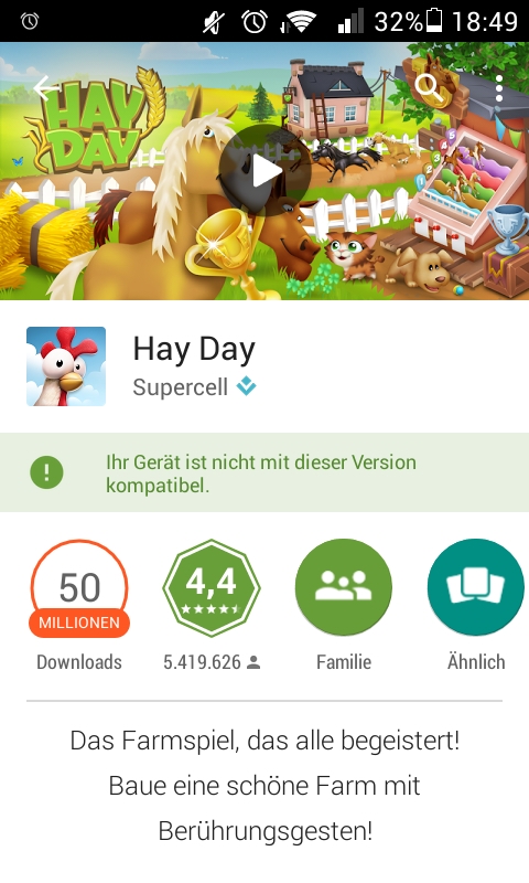 wenn ich bei Google play bin kommt der text das mein handy nicht geeignet ist.
