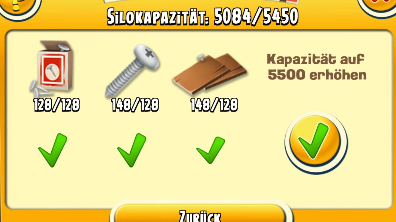 Ausserdem habe ich meinen Fokus allgemein aufs Ausbauen gelegt, da ich meine Ziele sonst fertig habe, wie zB die Stadt ausbauen, Land überall erweitern, alle Maschinen mit Stern, alle Tiere, alle Slots usw -