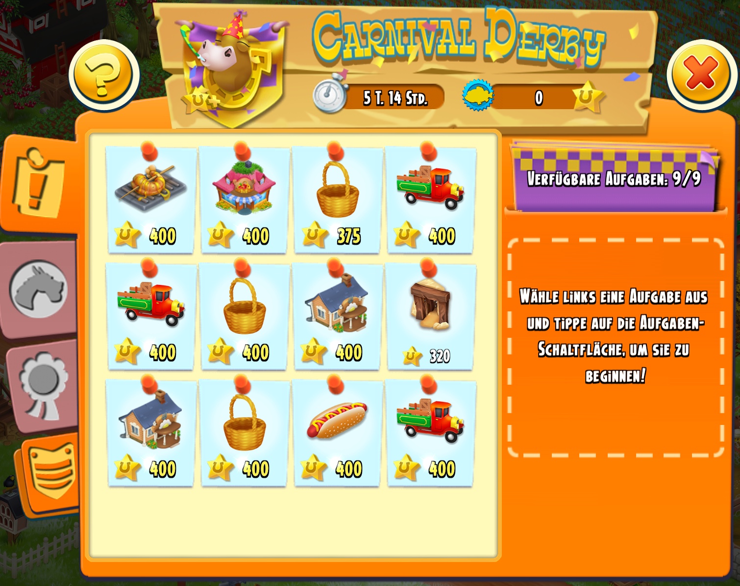 Jetzt habe ich meine 10 Aufgaben zusammen. Sieht gut aus. Nur 23 gelöscht und alles morgen Früh fertig. Wenn ich morgen los lege und als Letztes meine 96 LKW vom Hof geschickt habe, dann ist bestimmt viel Platz in der Scheune