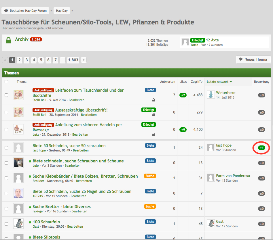 Ich würde gerne auch noch dazukommen, falls ich es schaffe Hay Day wieder auf dem Handy zum laufen bekomme ![]()