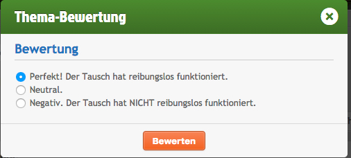Bitte erst bewerten, wenn der Tausch abgeschlossen ist.2. Hier gibt es 3 Auswahlmöglichkeiten. Perfekt, Neutral und Negativ.