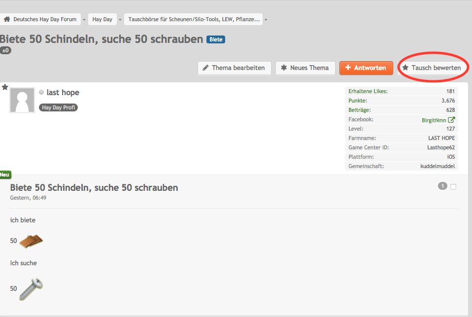 1.Neben dem "Antworten" Button gibt es die Möglichkeit den Tausch zu bewerten.