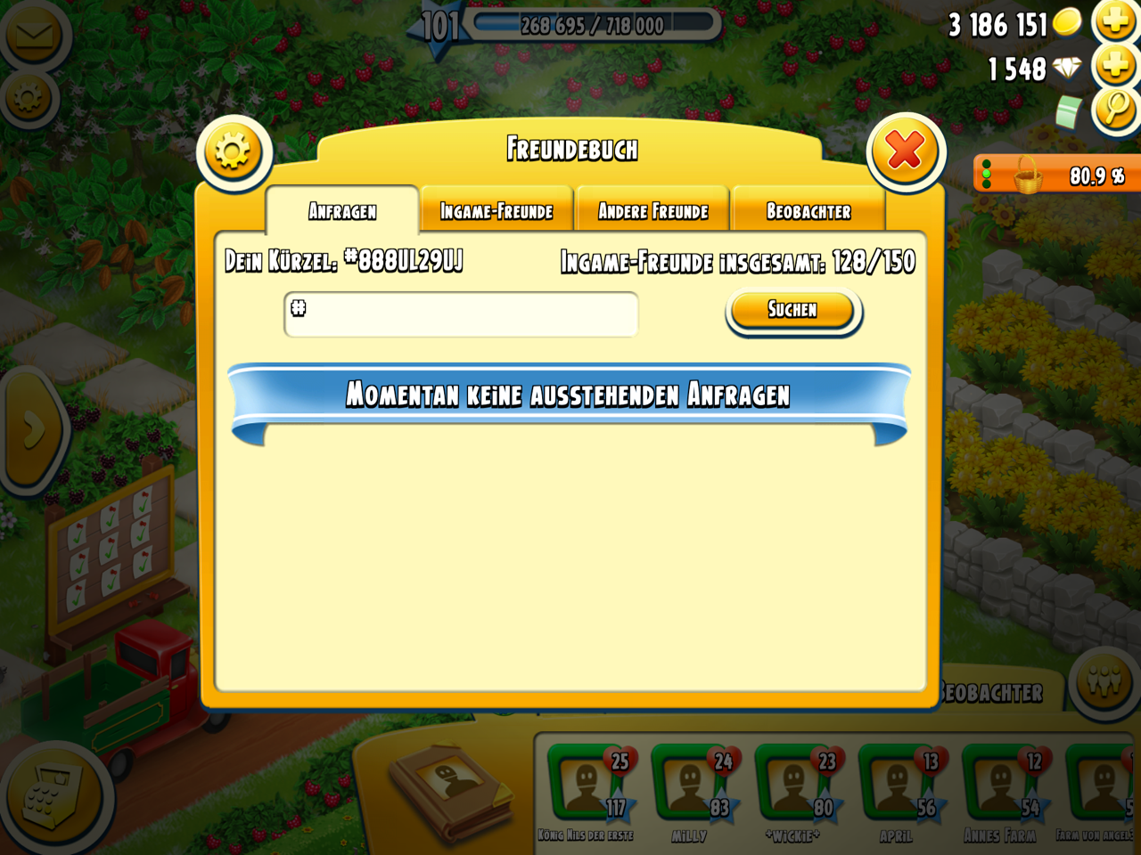 Bitte ruft doch mal die unten gezeigte Nummer der Ingame-Freundschaft auf und sagt mir, was ihr für ein Level vorfindet. Wenn ich meine Gemeinschaftsmitglieder frage, zeigt sich immer ein Level 1 statt 101. Oder habe ich mich vertippt (das sagt zumindest Supercell)?