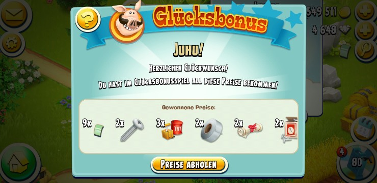 Heute hatte ich richtig Glück im Glücksbonus