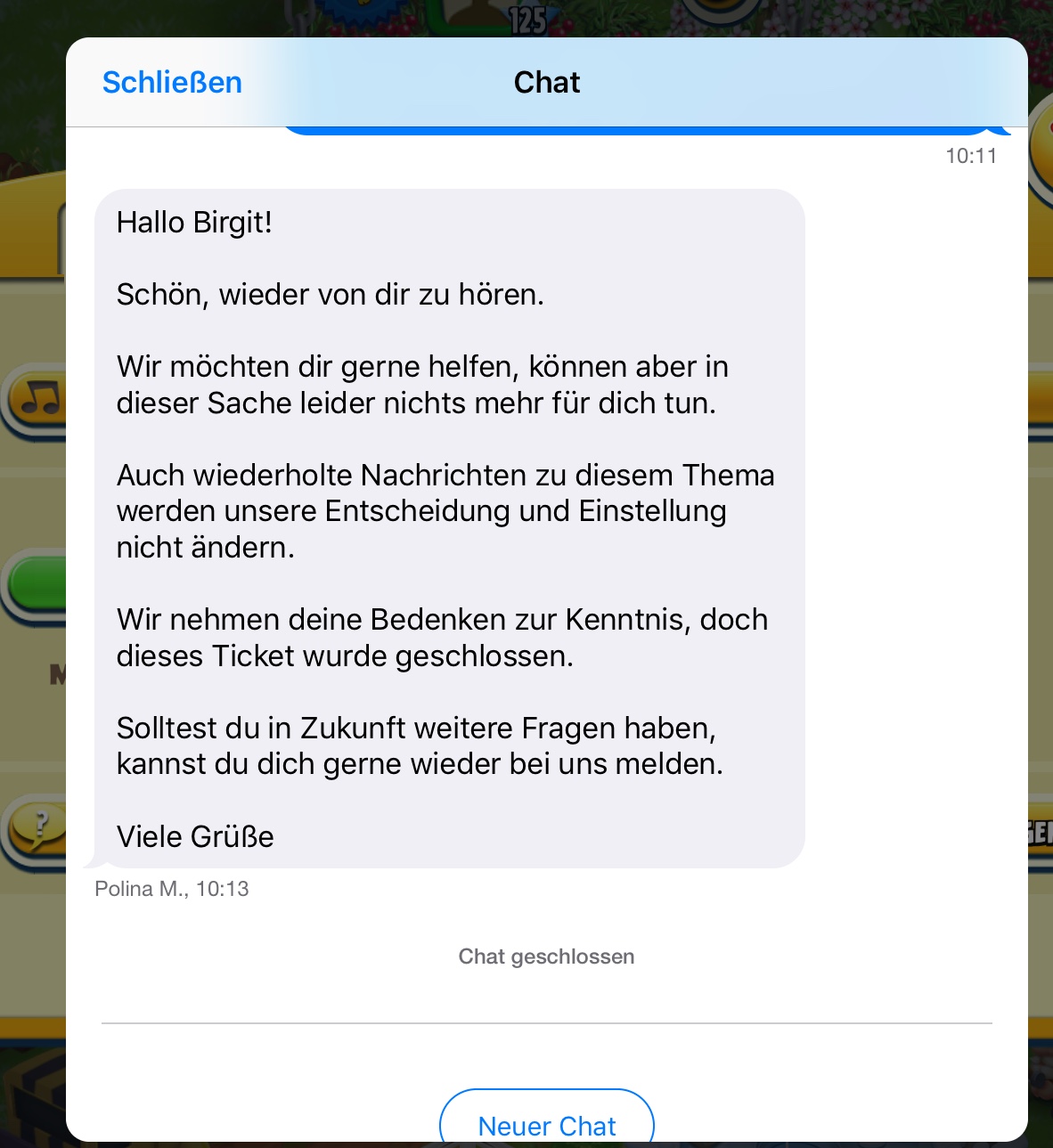Ich beobachte zur Zeit eine Lucifer Botfarm mit Level 8. diese habe ich SC mitgeteilt. Die könnten zumindest diese Farm jetzt sofort löschen. Was macht SC, schickt mir die Standard Computer-Antwort. Dann habe ich noch mal nachgefragt, ob ein Mensch gelesen hat, was ich geschrieben habe und dann haben sie das Ticket geschlossen. Das ist sehr unbefriedigend, aber wir müssen wohl damit leben oder uns ein anderes Spiel suchen.