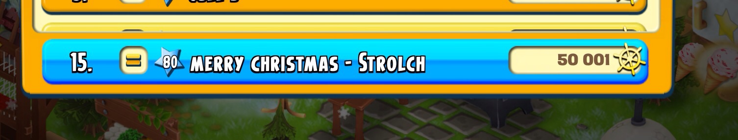 Mein persönliches HayDay-Ziel, das ich 2013 erreichen will, sind 50.000 Bootspunkte. Da ich mittlerweile 49.967 erreicht habe, schaut es sehr gut aus, dass ich mein Ziel erreiche