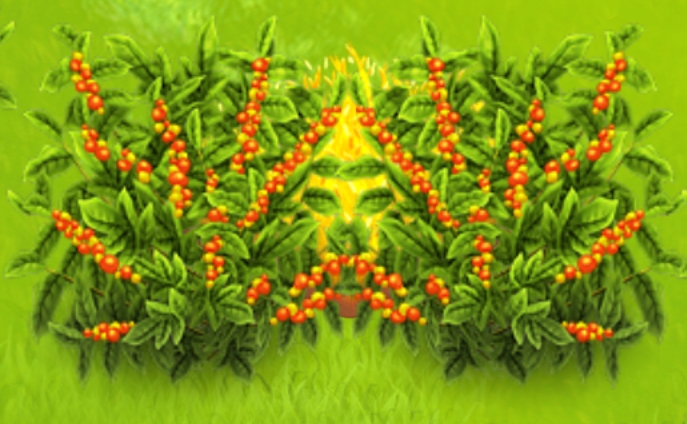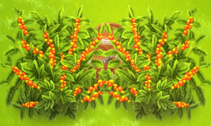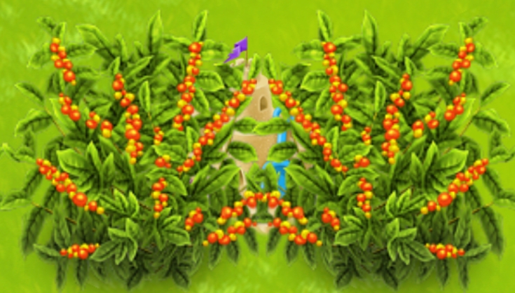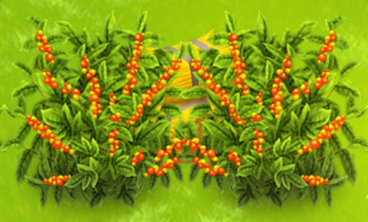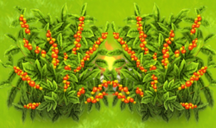 Die 2 Kaffeestrauch eng zusammen und 1 Weizenfeld dahinter