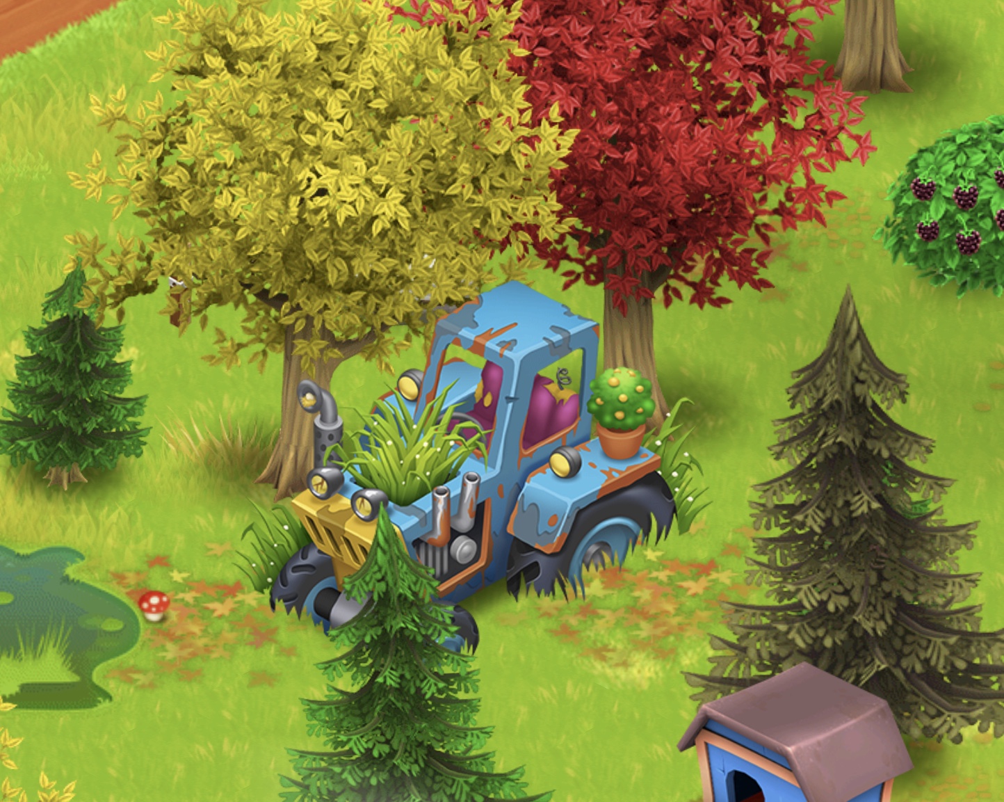 Ich stelle mir das ein wenig anders vor: die Küken sind nicht auf der Farm sondern irgendwo anders (wo auch immer) und weil sie so kleine verängstige Hascherl sind und den Weg nicht alleine schaffen, muß das Huhn (also ich) den Pfad auf die Farm mit Aufgaben freispielen.
