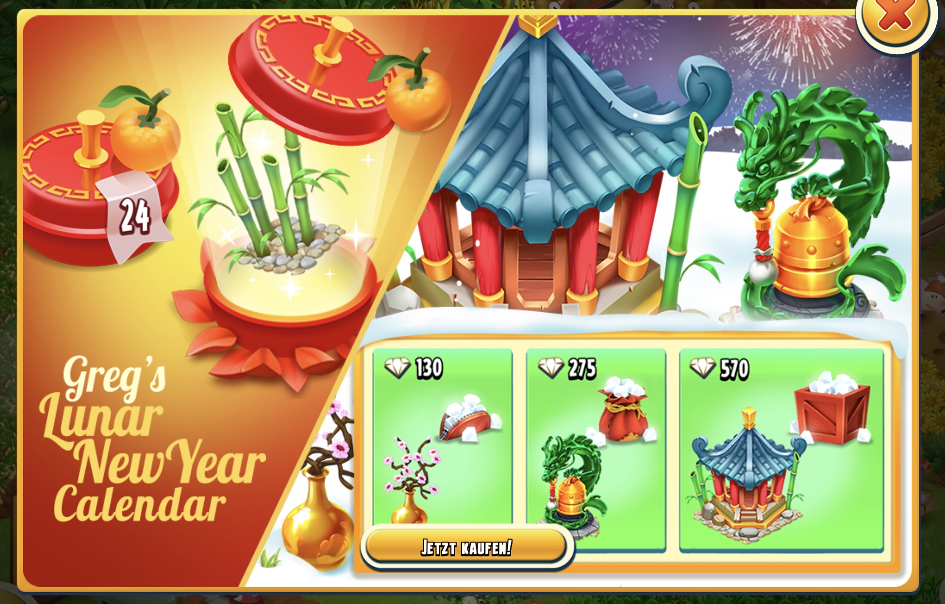 Anlässlich des chinesischen Neujahrsfestes gibt es seit heute auf Gregs Farm täglich Pakerl zu öffnen: