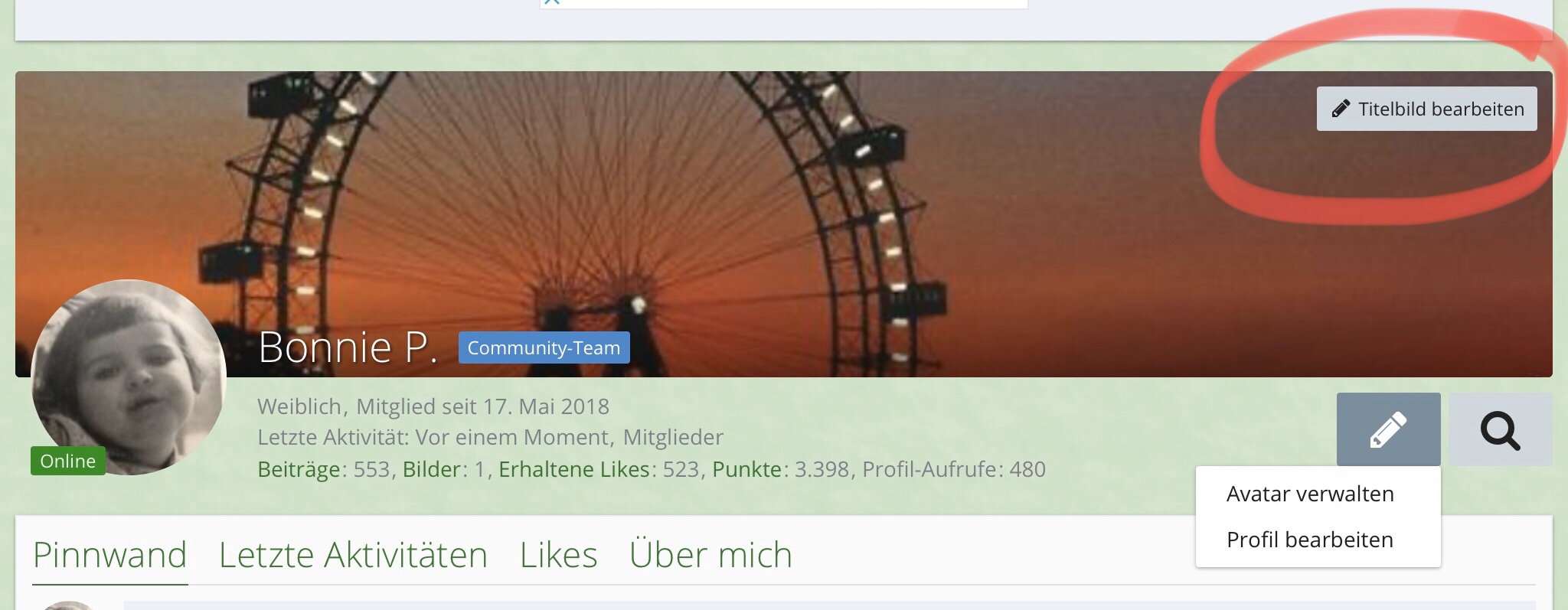 Die Softwareumstellung hat noch eine Neuerung gebracht: das Profil-Titelbild