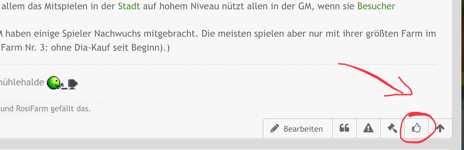 @Schmitzebilla53 ganz einfach, in der unteren rechten Ecke des Beitrags den du liken möchtest auf „Daumen hoch“ klicken.